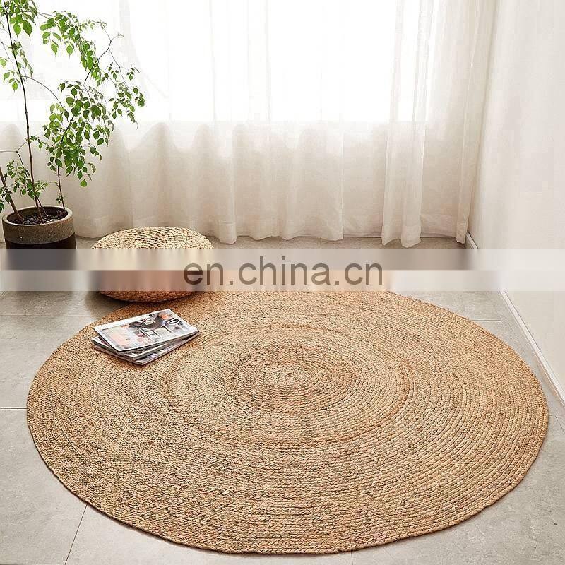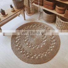 Beautiful Knotted Round Jute Rug Rustic Style Natural Brown Seagrass Straw Floor Mat Carpet Vietnam Supplier
