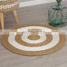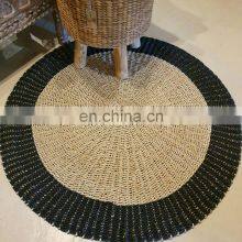 Multicolor Hand Woven Seagrass Round Rug Rustic Style Natural Straw Floor Mat Vietnam Supplier