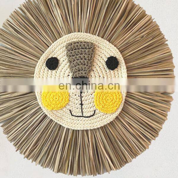 Handcrafted Lion Face Seagrass Wall Hanging Decoration Straw Rustic Art Decor Cheap Wholesale