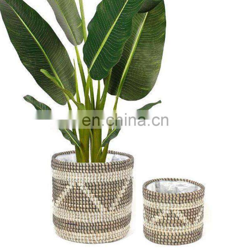 High Quality Set of 2 Seagrass Planters With Black String Storage Basket Plant Holder Storage Basket