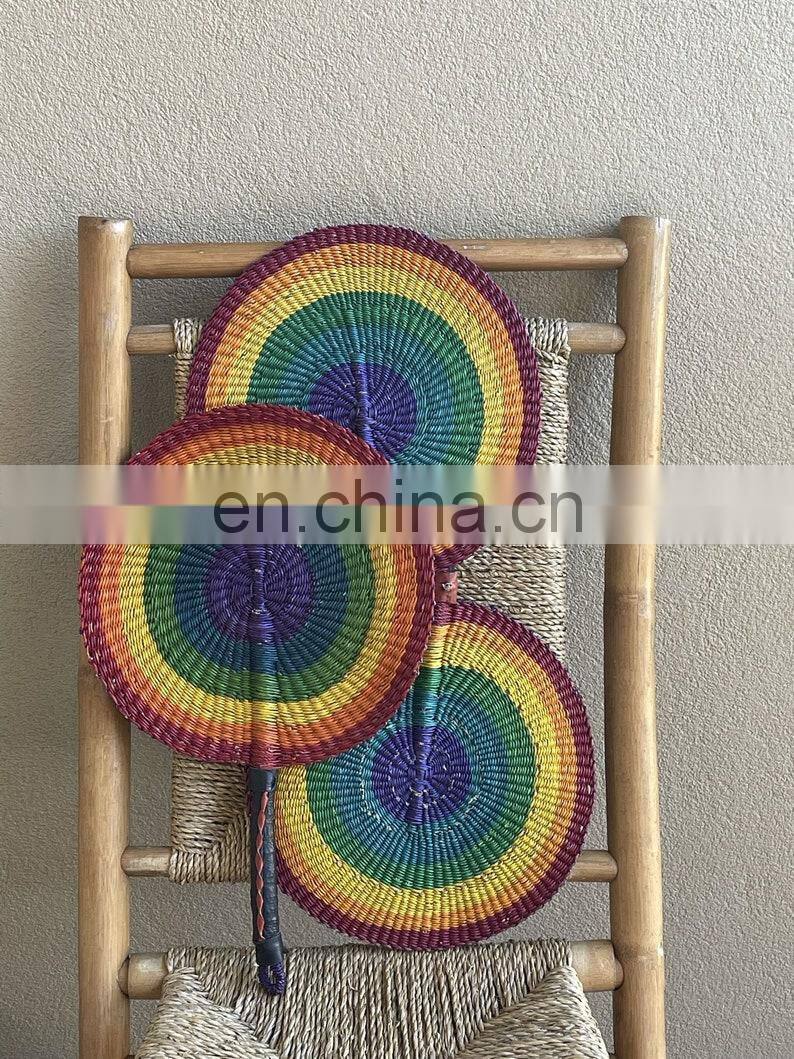New RAINBOW CIRCLE WOVEN Seagrass Hand Fan wall decoration