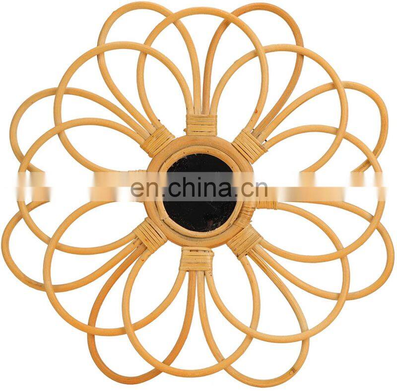 Hot Sale Old Mirror Rattan Bamboo Wicker Style Pattern Petals Flowers Daisy Vintage WHolesale Made in Vietnam