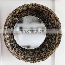 Hot Selling Natural and Rustic Water Hyacinth Mirror Boho Straw Mirror Wall Vintage Decoration High Quality