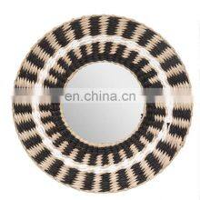 Hot Selling Wicker Woven Black Water Hyacinth Mirror Boho Straw Mirror Wall Vintage Decoration High Quality
