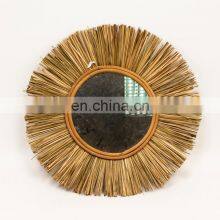 Natural Vintage Straw Handwoven Round Seagrass Mirror Decoration Bohemian Art Decor Manufacturer Vietnam Cheap Wholesale