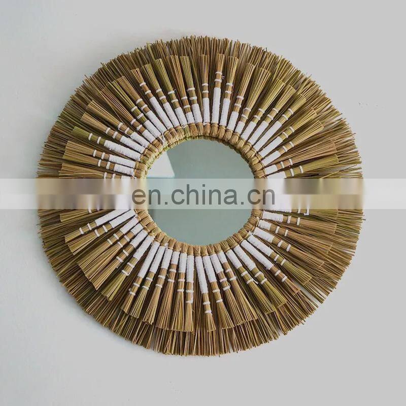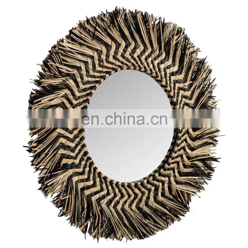 New Arrival Braided Water Hyacinth Mirror on Wood Frame Boho Straw Wall Vintage Decoration High Quality Vietnam Supplier