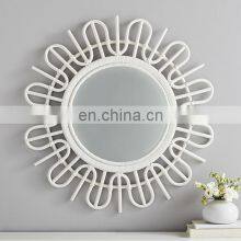Beautiful Full White Flower Shape Rattan Mirror Boho Home Decoration Decor Living Room WHolesale Made in Vietnam