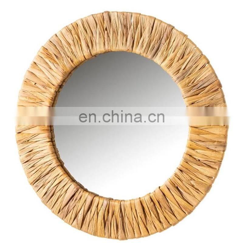 New Arrival Braided water Hyacinth mirror on wood frame Boho Straw wall Vintage Decoration High Quality Vietnam Supplier