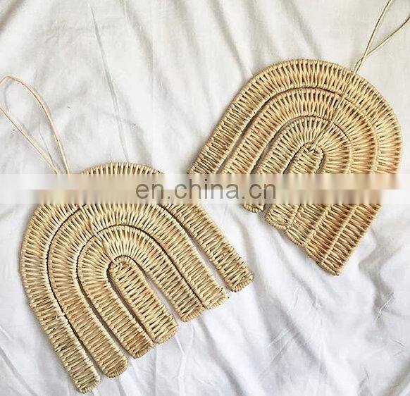 NEw Design Handwoven Woven Seagrass Basket Wall Decor Weave Straw Placemat With Printing Wood Art Decor Placemat Wholesale