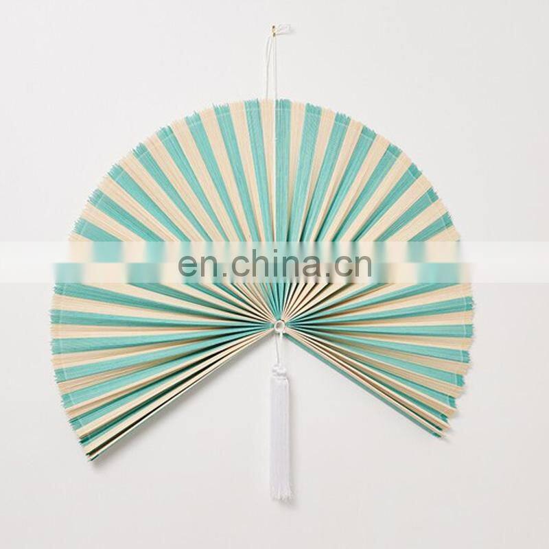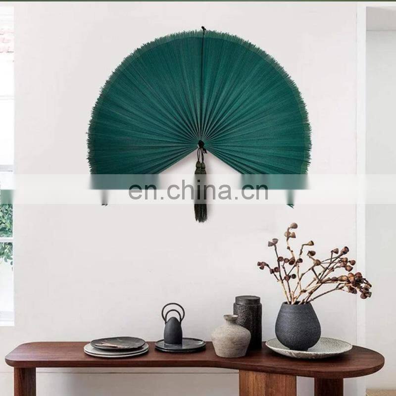 Hot Selling Green Hand Woven Bamboo Fan Wall Hanging With Tassels High Quality Cheap Wholesale Made in Vietnam