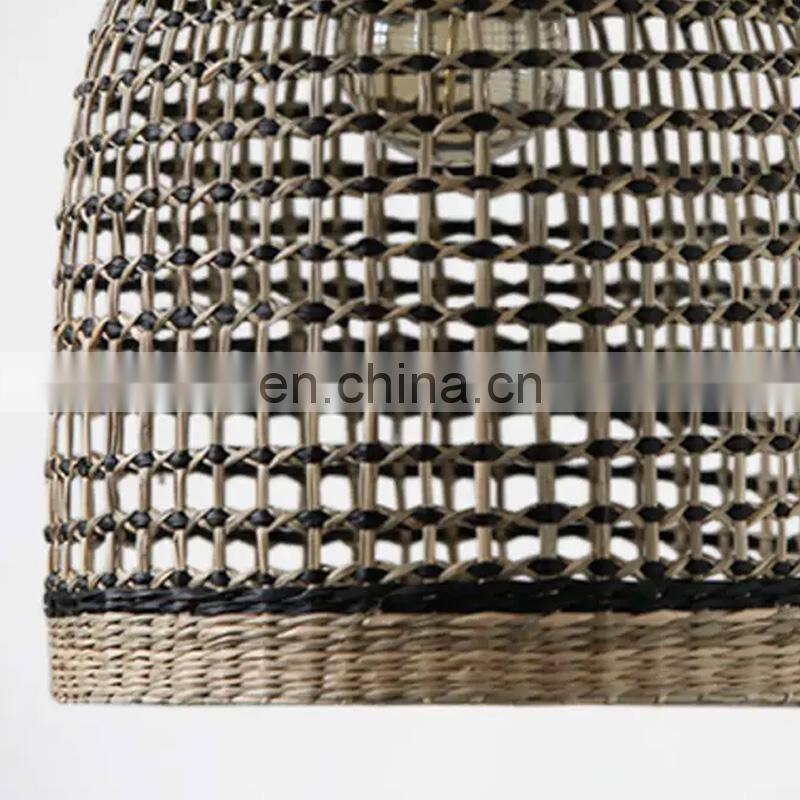 Hot Sale Natural and Black Mix Seagrass Woven Lampshade Ceiling Lights Straw Cheap Wholesale Vietnam Manufacturer