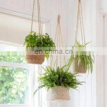 Best Seller Woven Natural Jute & Seagrass Hanging Planters With Lining Straw Planter Storage Basket Plant Holder Wholesale
