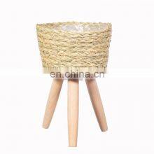 Best Seller Basket Planter on Leg Small Removable Legs Straw Plant Stand Storage Basket Plant Holder Wholesale