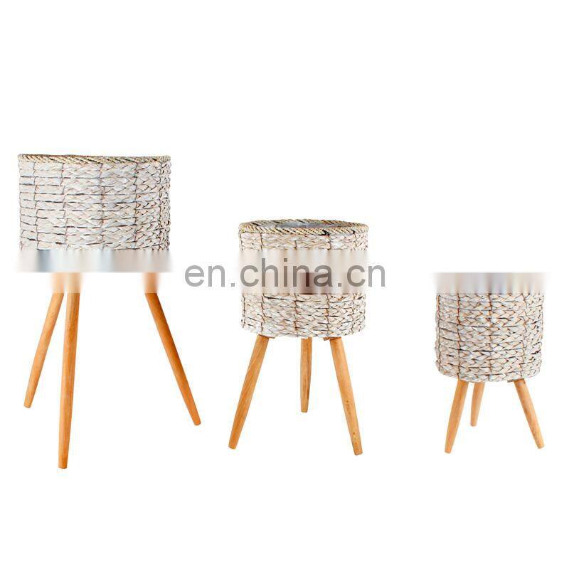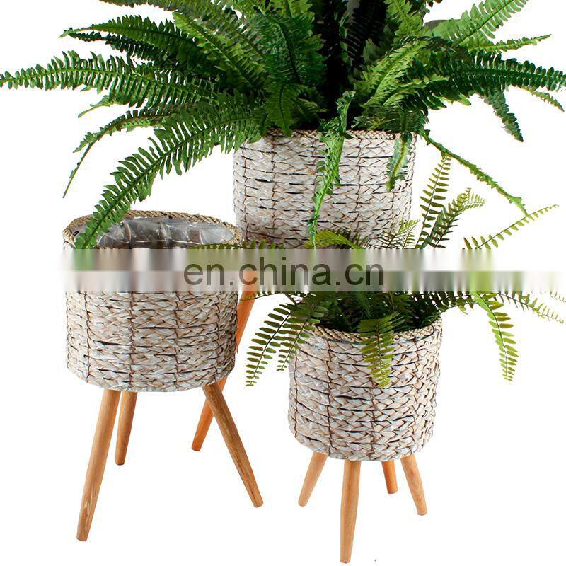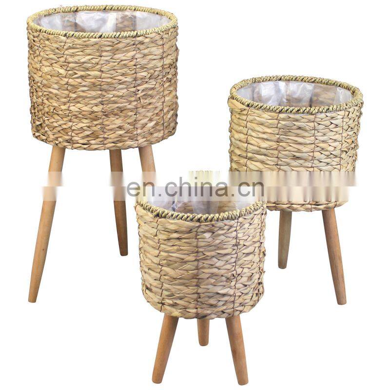 Hot Selling Removeable Leg Water Hyacinth Planter With Stand Wicker Plant Stand Basket Planter Pot Wholesale