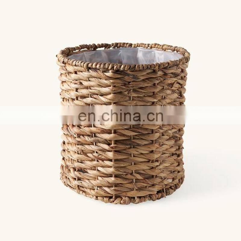 Best Price Woven Natural Water Hyacinth Planter With Plastic Inside Handwoven Storage Basket Cheap Wholesale