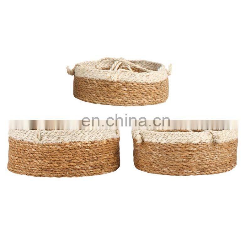 Best Seller 3 Piece Jute & Seagrass Hanging Planter Set With Lining Straw Planter Storage Basket Plant Holder Wholesale