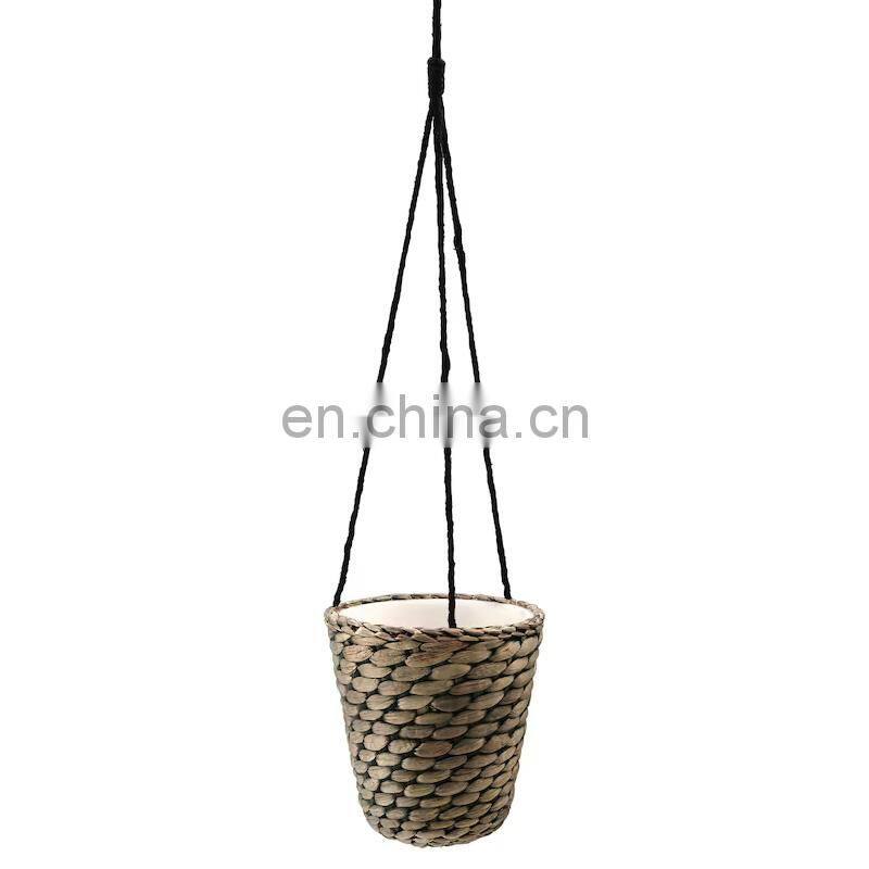 Collection Of Rustic Woven Water Hyacinth Hanging Planter With Lining Seagrass Straw Cover for Flower Pot