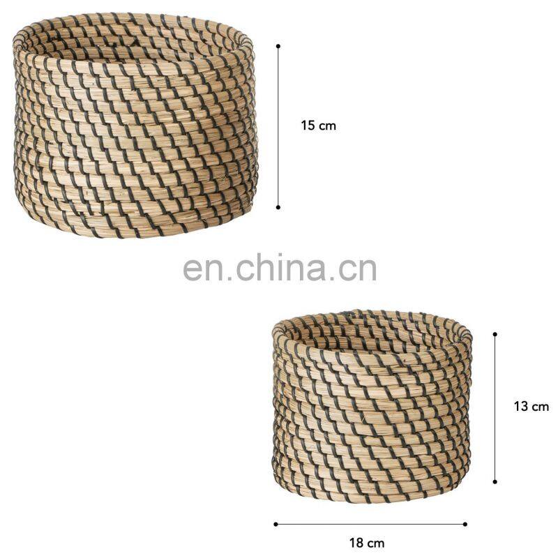 Traditional Rustic Set of 2 Natural Seagrass Storage Basket Customized Straw Plant Holder Decor Home Wholesale