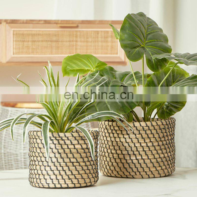 Hot Selling 2 Piece Natural Seagrass Planter Set Storage Basket Plant Holder Wholesale