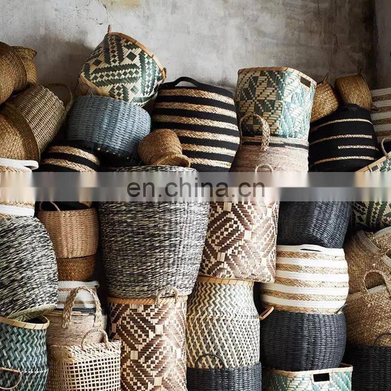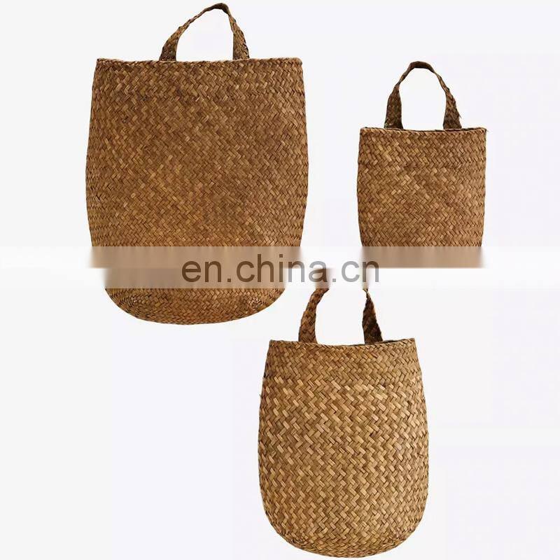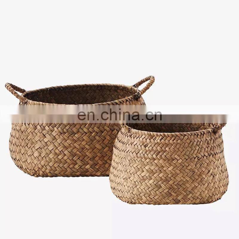 Traditional Rustic Set of 2 Natural Seagrass Storage Basket customized Straw Plant Holder Decor Home Wholesale