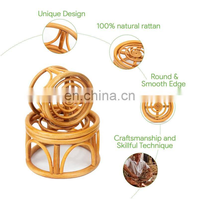 Hot Sale Set of 2 Mini Rattan Woven Plant Stand Natural Planter For Decor Table Wholesale