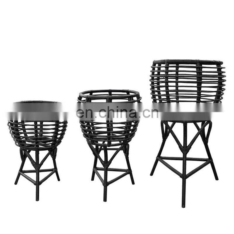 Best Seller Woven Black Rattan Plant Stand Flower Pot Wicker Plant Holder Basket For Indoor Outdoor Wholesale