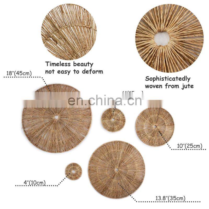 Hot Sale Seagrass Set of 5 Wall Hanging Jute Basket | Round Handwoven Southwestern Decorative Wall Accents Wholesale
