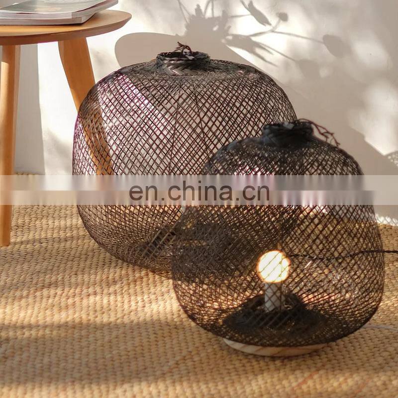 Hot Sale High Black Bamboo bamboo floor lamp Wicker Lampshade with Wooden Base Many Sizes Vietnam Manufacturer