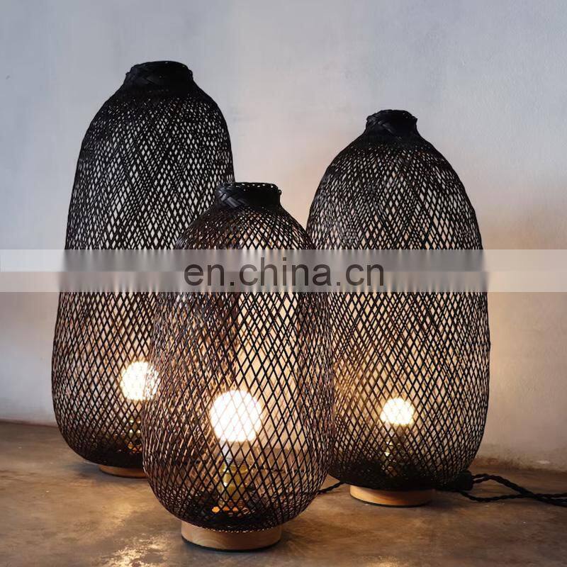Hot Sale High Black Bamboo Bamboo Floor Lamp Wicker Lampshade With Wooden Base Many Sizes Vietnam Manufacturer