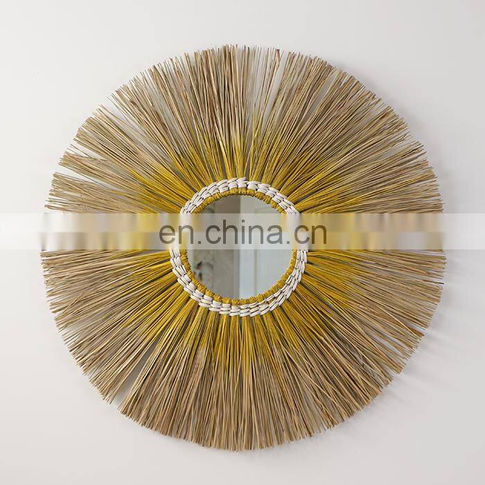 Rattan Wall Mirror With Macrame Mirror for Wall Kid Room Decor Handmade Decorative Wicker Vietnam Manufacturer