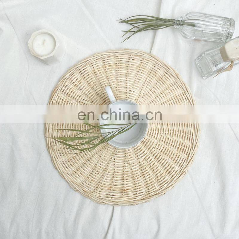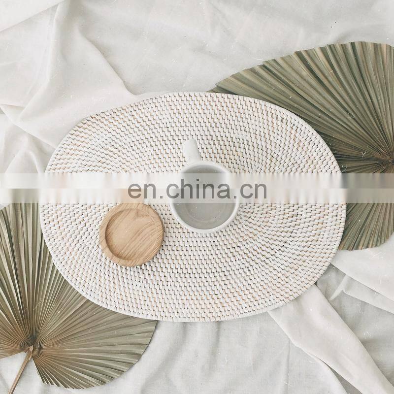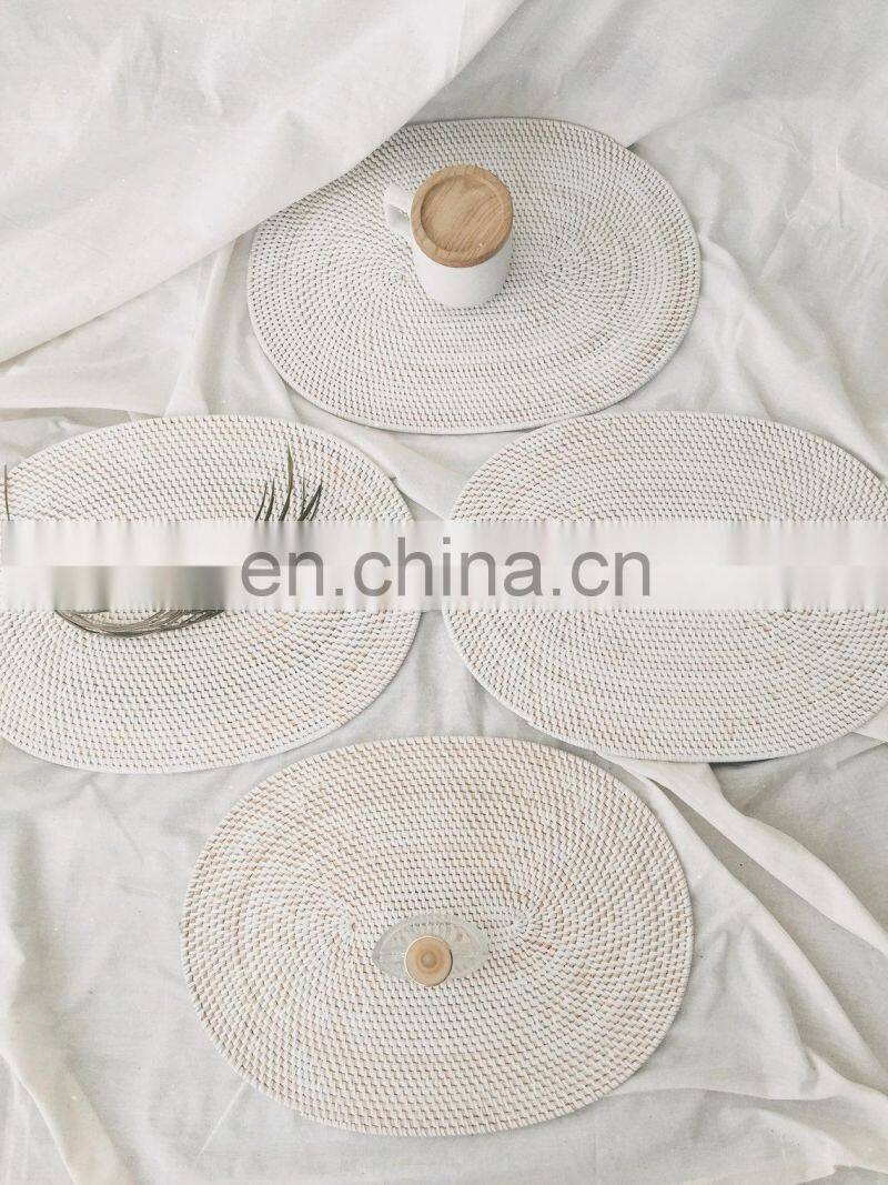 Whitewashed Color Rattan Placemats Dining Table,Wicker Round Placemats,Rattan Bali Decoration