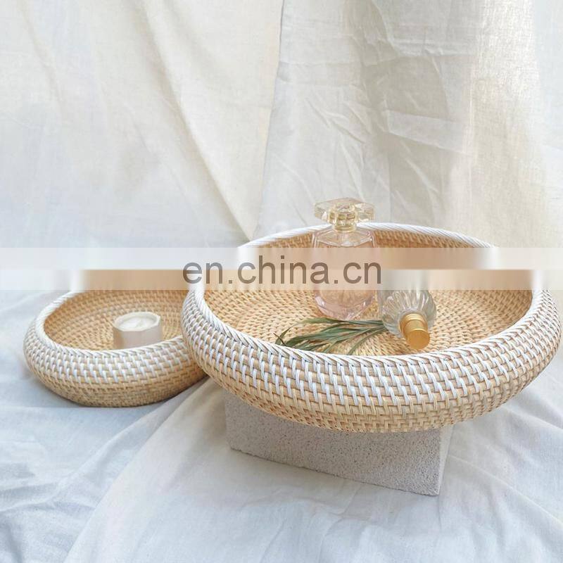 White Woven Round Rattan Tray, Coffee Table Tray, Round Boho Serving Tray for Table Wholesale