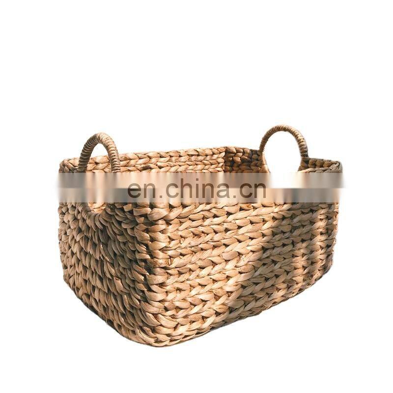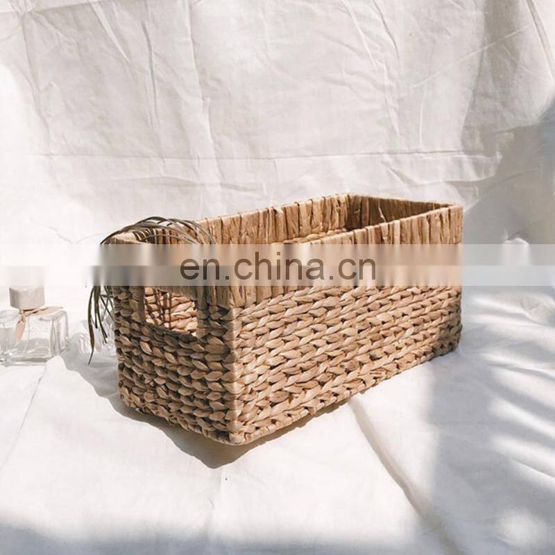 Handmade Water Hyacinth Storage Basket Wicker Rectangle Basket, Straw Box Hamper
