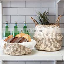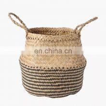 Seagrass Belly Basket Storage Hand-woven Painted Flower Plant Pot Foldable