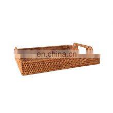 Rattan Rectangle Food Serving Trays Handmade Polygonal Rattan Tray With Handle Wholesale