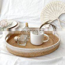 White Woven Round Rattan Tray, Coffee Table Tray, Round Boho Serving Tray for Table Wholesale