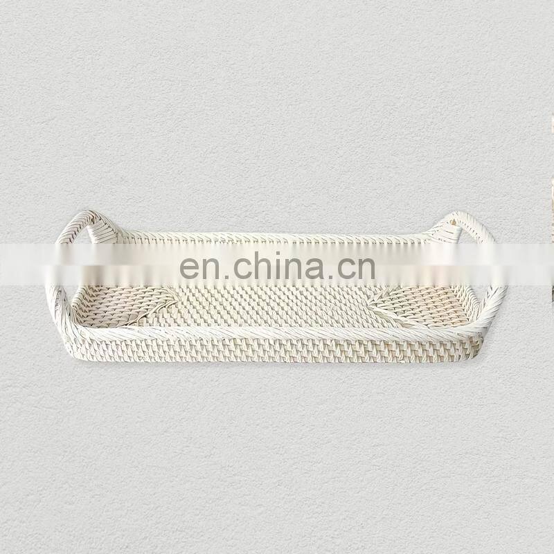 Rectangular Rattan White Tray, Wicker Serving Tray With Handle, Coffee Table Tray Wholesale Vietnam