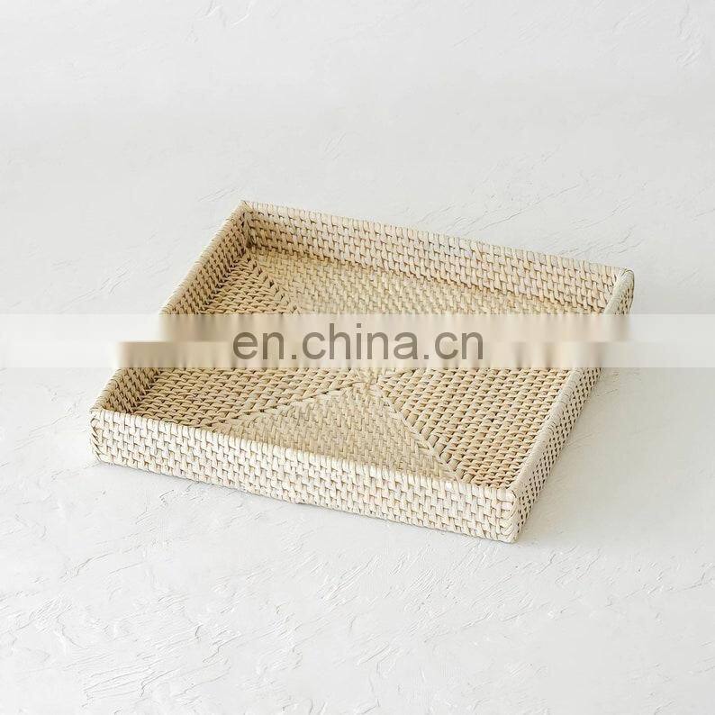 Home > Products > Home & Kitchen Accessories > White Woven Rattan Square Tray, Straw Serving Tray, Decorative Boho Tray for Table Decor