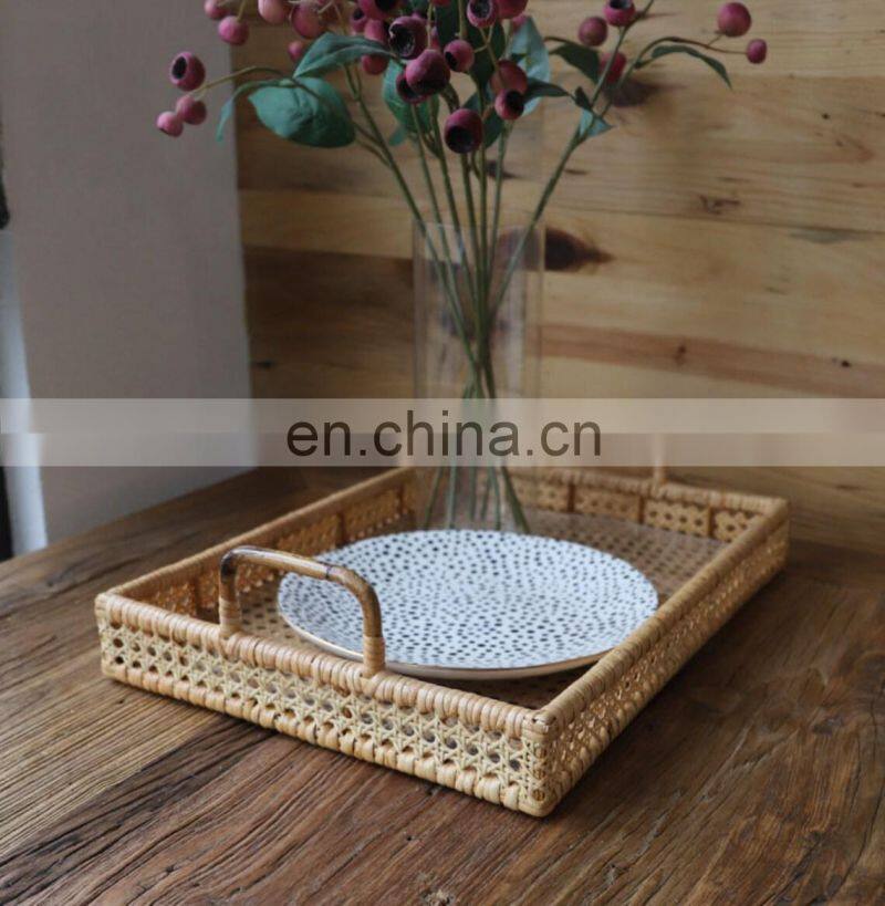 Rattan Rectangle Food Serving Trays Handmade Polygonal Rattan Tray With Handle Wholesale