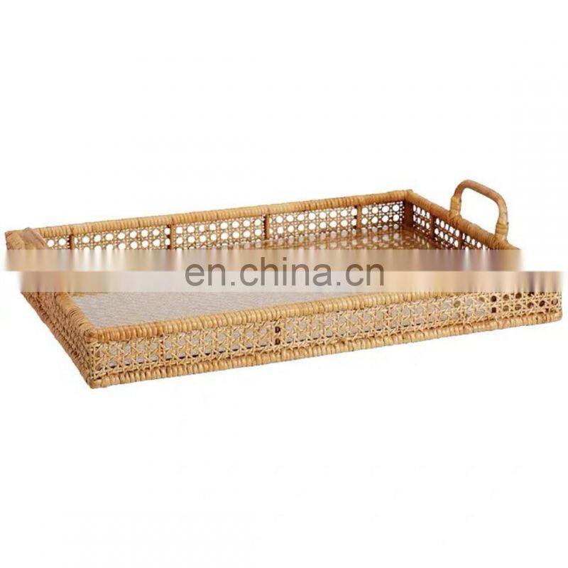Rattan Rectangle Food Serving Trays Handmade polygonal rattan tray with handle Wholesale
