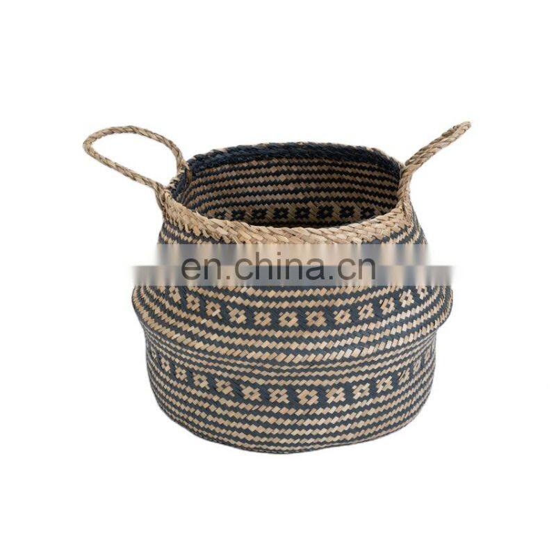 Seagrass Belly Basket Storage Hand-woven Painted Flower Plant Pot Foldable