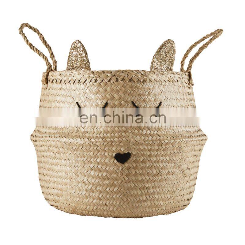 Sleepy Bear Set Seagrass Belly Basket Plant Holder Storage Basket Decor Home High Quality