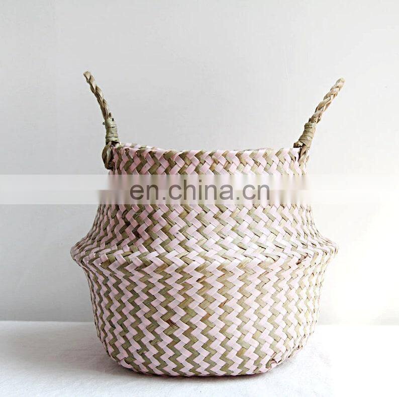 Seagrass Belly Basket, Beautiful Foldable Seagrass Woven Storage Baskets Planter Pot Wholesale
