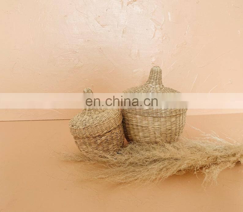 Hot Selling Sweet Smaller Woven Seagrass Basket With Lid Natural Straw Candy Basket Box Wholesale