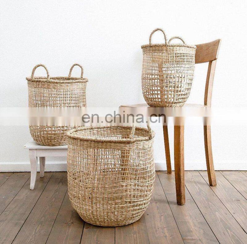 Natural Super Trendy Storage Basket Woven From Seagrass Laundry Basket Handwoven Natural Wholesale