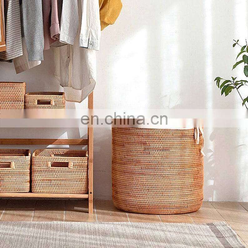 Useful Large Woven Rattan Laundry Basket with Handle, Rattan Basket for Home Storage Decoration Wholesale