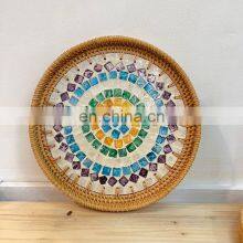 New Arrival Bohemian Rattan Tray, Woven Tray for Coffee Table, Ottoman Serving Tray Vietnam Supplier