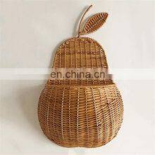 Pear Shaped Rattan Wall Basket Handwoven Fruit Storage