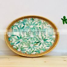 Hot Sale Rattan Serving Tray With Mother of Pearl Wholesale