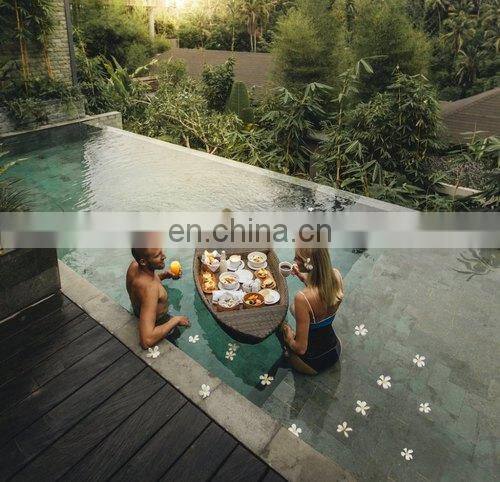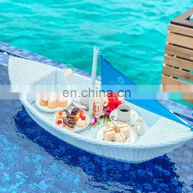 Vietnam Supplier Boat Shaped PE Rattan Floating Pool Tray Hotel Water Floating Breakfast Serving Tray